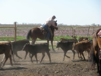 2-3 years: If a horse is still at Olson Ranch at this age, they’ll start working them around cattle. They’ll start progressing from ground work to full fledged riding and horsemanship. Rae calls it a “small trail class”. During this time, they’ll also be introduced to the barrel pattern. Instead of repeatedly drilling the horses on the barrel pattern, they incorporate the barrels into their everyday riding. This prevents horses from getting ‘burnt out’ on the pattern.